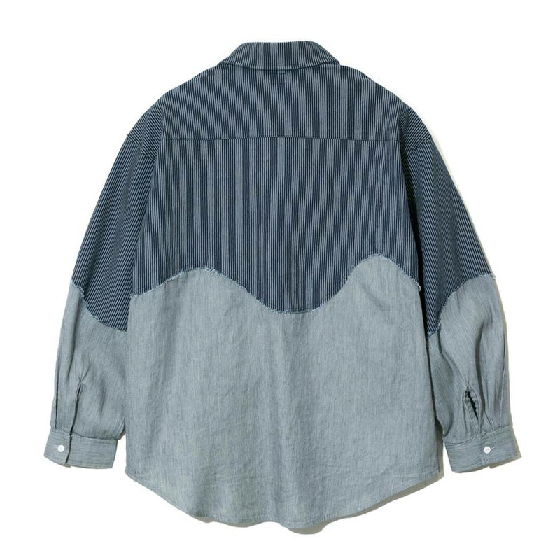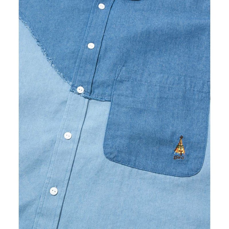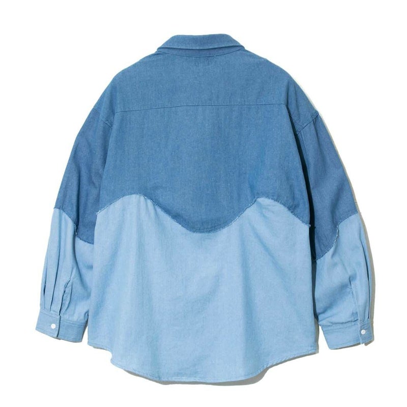 6. ゴースローキャラバン go slow caravan グネグネ切替シャツ メンズ レディース ユニセックス 春 夏 コットン イエロー ブルー デニム カジュアル 長袖 シャツ 326102アウトレット セール