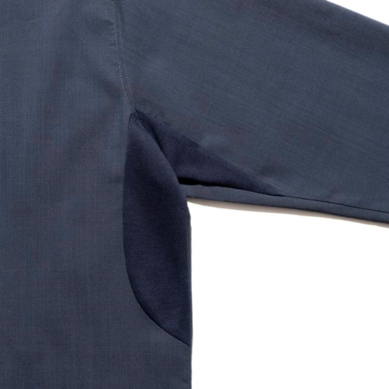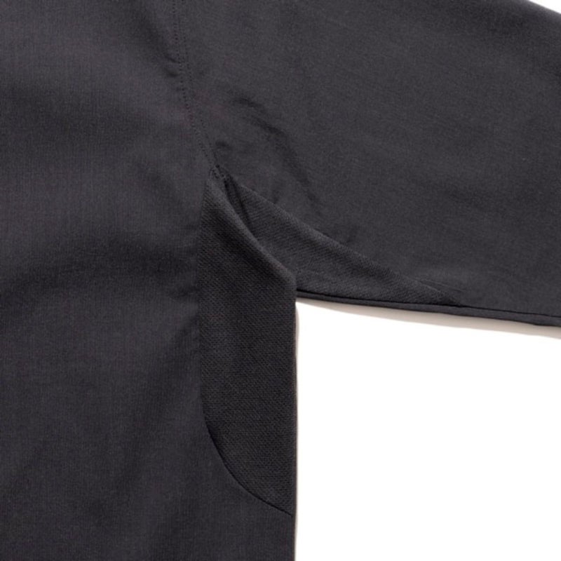BODYにはリネンライクでドライな質感を実現したオリジナルファブリック"NOMAD DRY"のストレッチ生地を採用。サイドと袖口にはPolartecR POWER DRYを使用し袖から脇部分にパターンを入れることで高い通気性とスムーズな腕上げを実現しました。