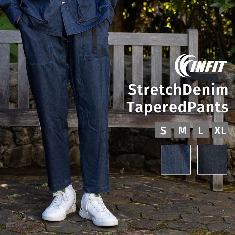 6. インフィット INFIT のびのび!ストレッチデニムテーパードパンツ メンズ カジュアル オールシーズン パンツ ブラック 黒 ネイビー 紺 カジュアル パンツ デニム テーパード キャンプ アウトドア TYC-5F3101