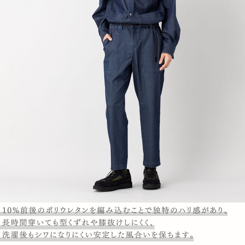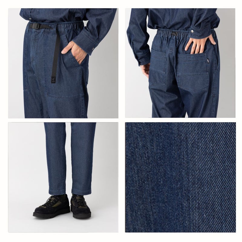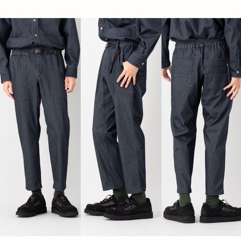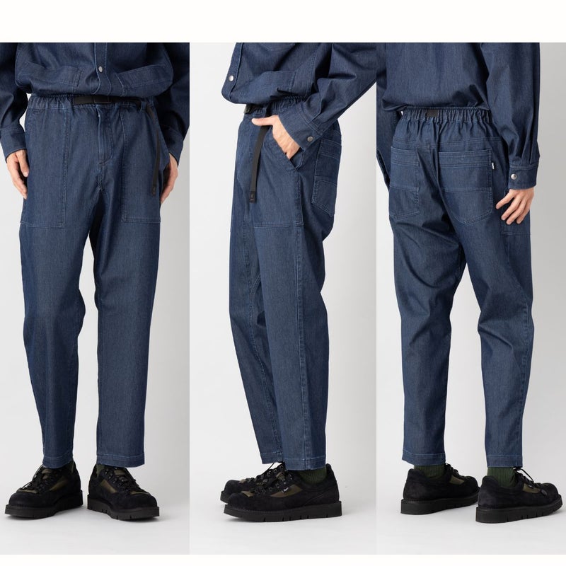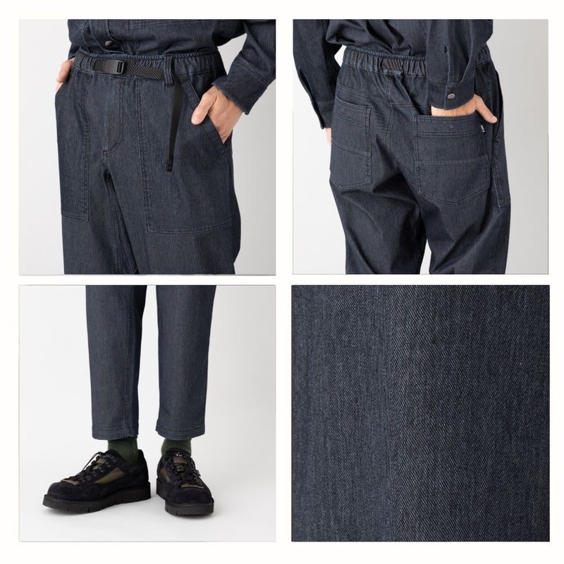 すっきりとしたシルエットながら、ガゼットクロッチ仕様で開脚がしやすく、アクティブな動きにも対応。ウェビングベルト付きで片手で簡単にウエスト調整が可能です。デイリーにもアウトドアにも快適に穿ける万能パンツです。