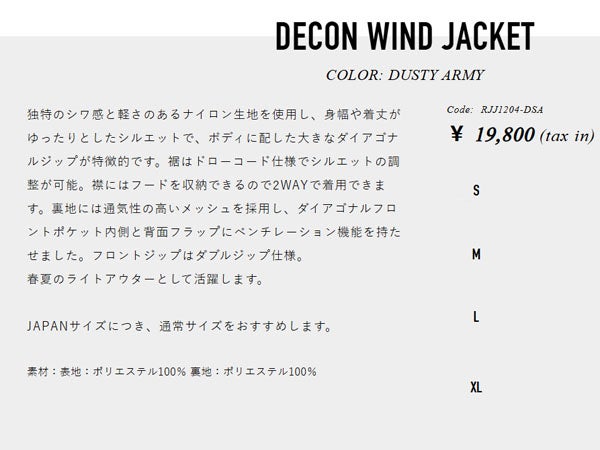 他の画像を見る カジュアル ウェア アウター ロアーク デコン ウィンド ジャケット メンズ ROARK DECON WIND JACKET RJJ1204-DSA メーカー希望小売価格 ¥ 19,800 販売価格 ¥ 19,800 税込 在庫を見る お気に入りに登録する