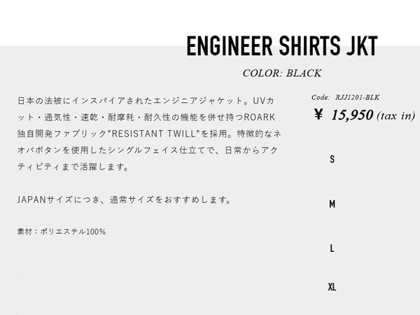 他の画像を見る カジュアル ウェア アウター ロアーク エンジニアジャケット メンズ ROARK ENGINEER SHIRTS JKT RJJ1201-BLK メーカー希望小売価格 ¥ 15,950 販売価格 ¥ 15,950 税込 在庫を見る お気に入りに登録する