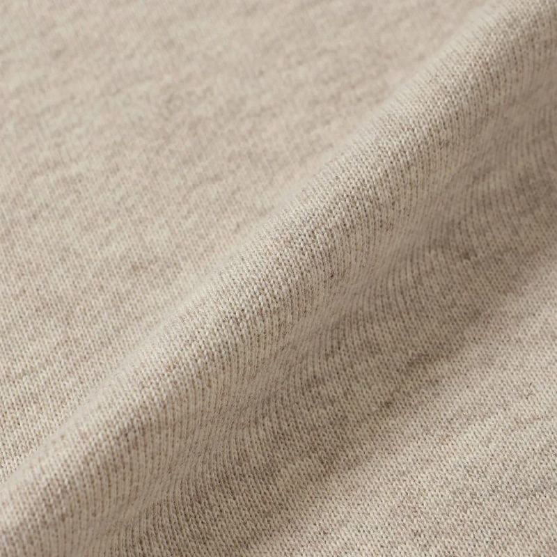 内側は、「裏毛」になっており裏起毛に比べて、通年着できる仕様になっています。さらに、ポリエステルを混紡する事で生地に強度としなやかさをプラスしています。