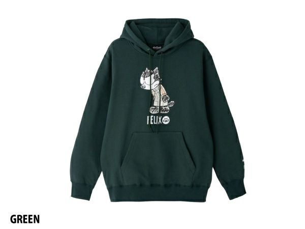 第三弾はスウェットパーカー。 「フィリックス・ザ・キャット」がWILDTHINGSの代表作であるMONSTER PARKAを着用した 今回限りのスペシャルアイテム。