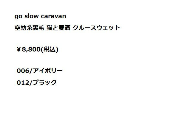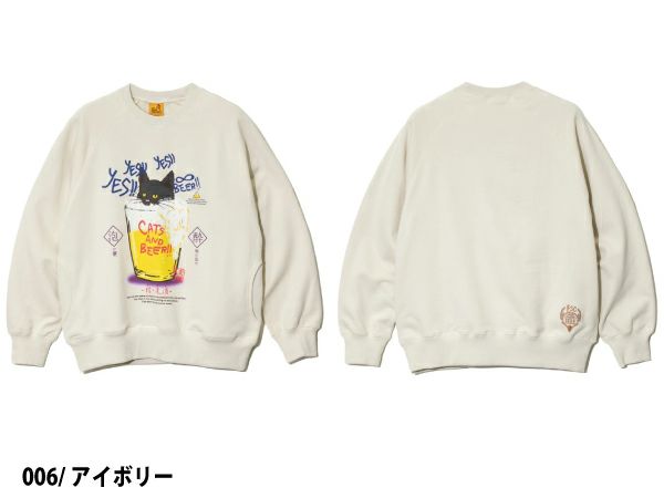 6. ゴースローキャラバン go slow caravan 空紡糸裏毛 猫と麦酒 クルースウェット トレーナー カジュアル ウェア 332606 アウトレット セール