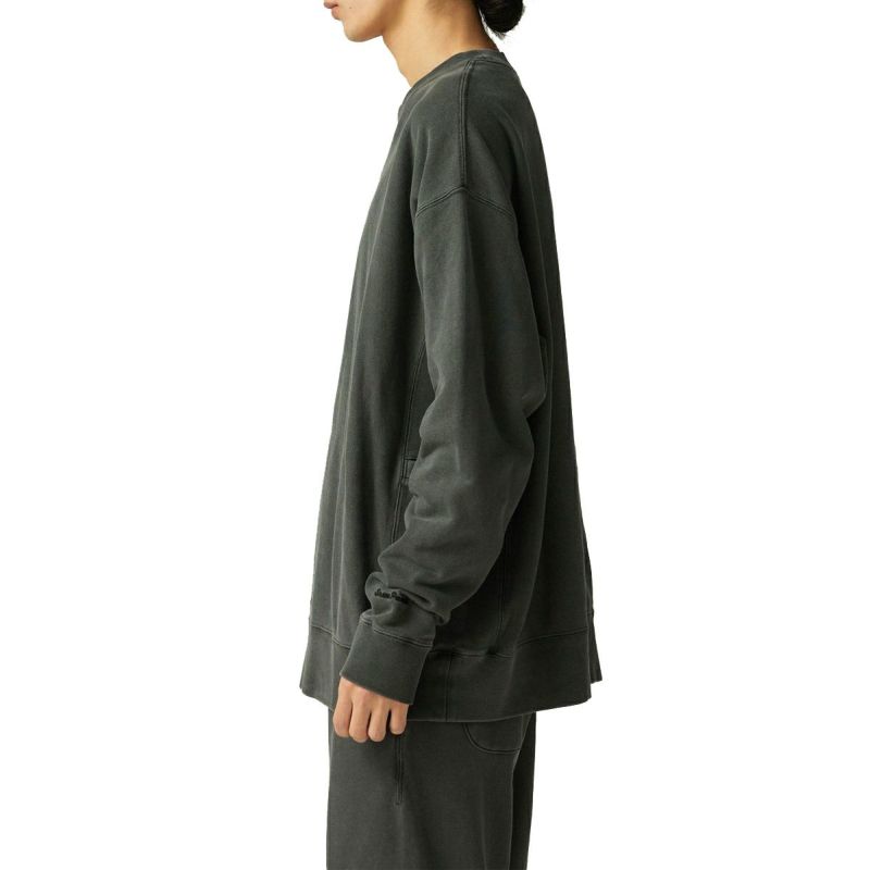 着用時に立体感が出るよう、脇にマチを設けた長袖のクルーネックプルオーバー。