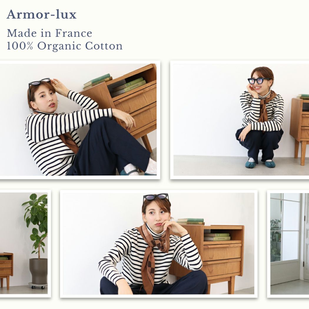 【50%OFF】 アルモリュクス Armorlux タートルネック ロングスリーブ バスクシャツ ボーダーシャツ ユニセックス メンズ レディース ストライプ ボーダー 綿 オーガニックコットン フランス オールシーズン カジュアル 長袖 シャツ シンプル 清潔感 柔らかい ベーシックフィット 90589B アウトレット セール