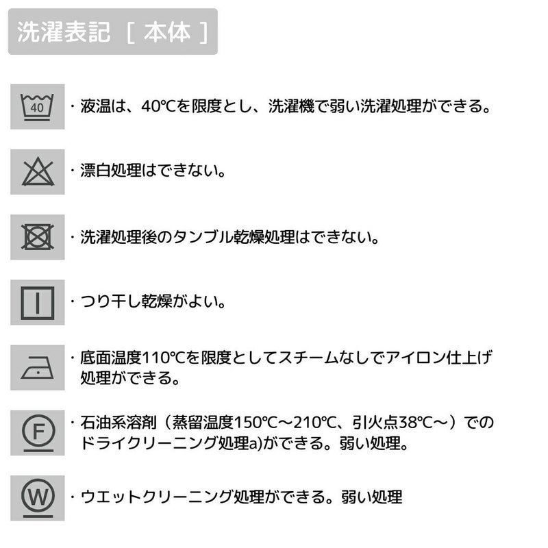 ・石油系溶剤(蒸留温度150℃~210度、引火点38度~)でのドライクリーニング処理a)ができる。弱い処理。
