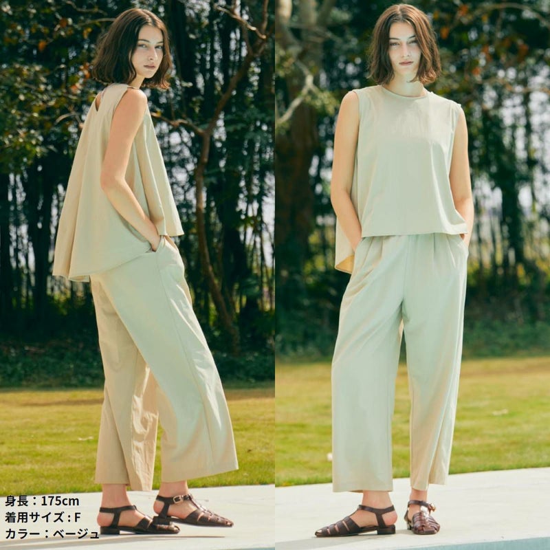 フロントの2タックが腰回りをふんわりカバーし、リラックス感とスタイルアップを両立してくれます。