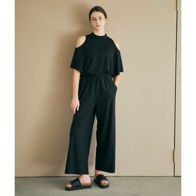 同素材のトップスと合わせれば、オールインワンのような洗練されたコーデが完成します。