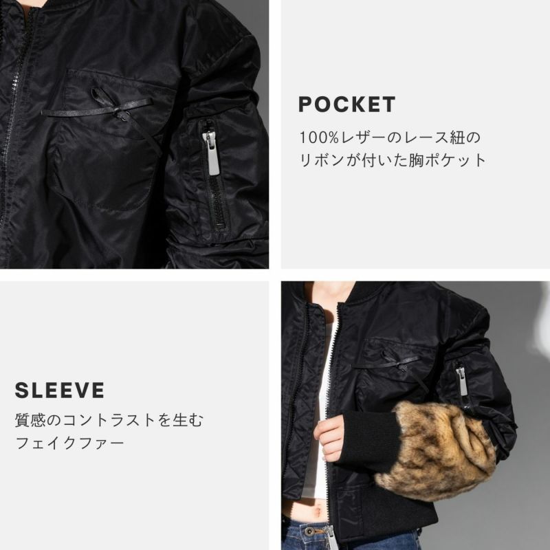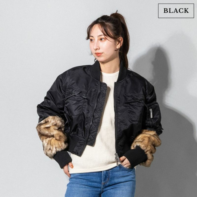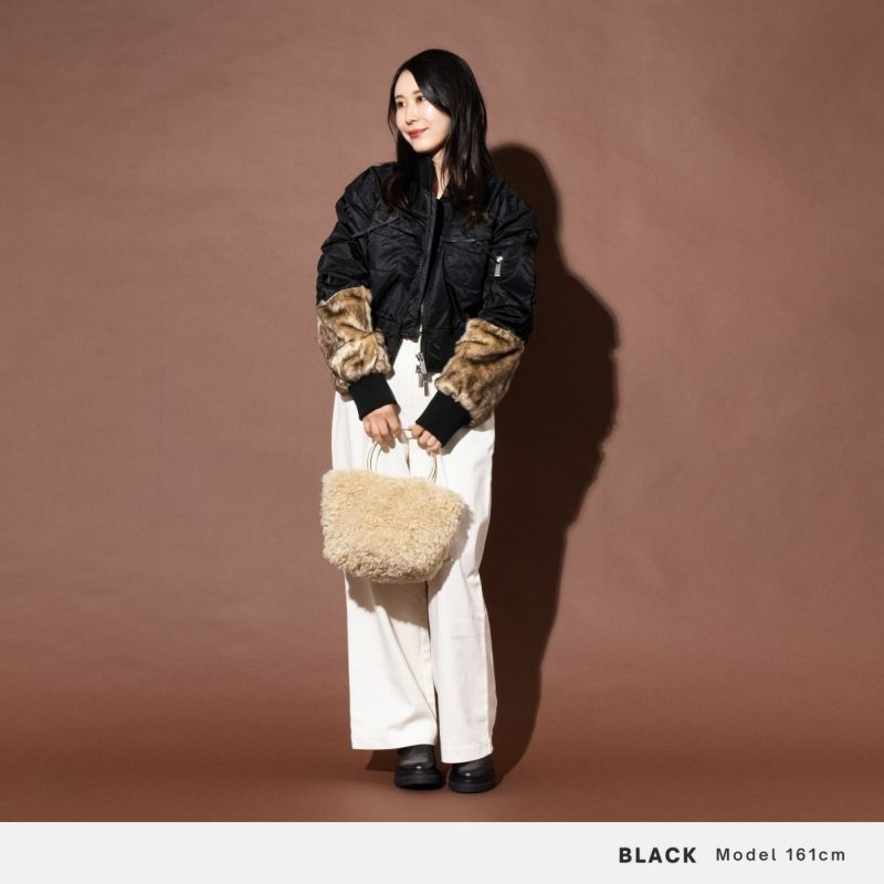 クロップド丈のウエストとコントラストの効いたフェイクファーの袖が特徴です。