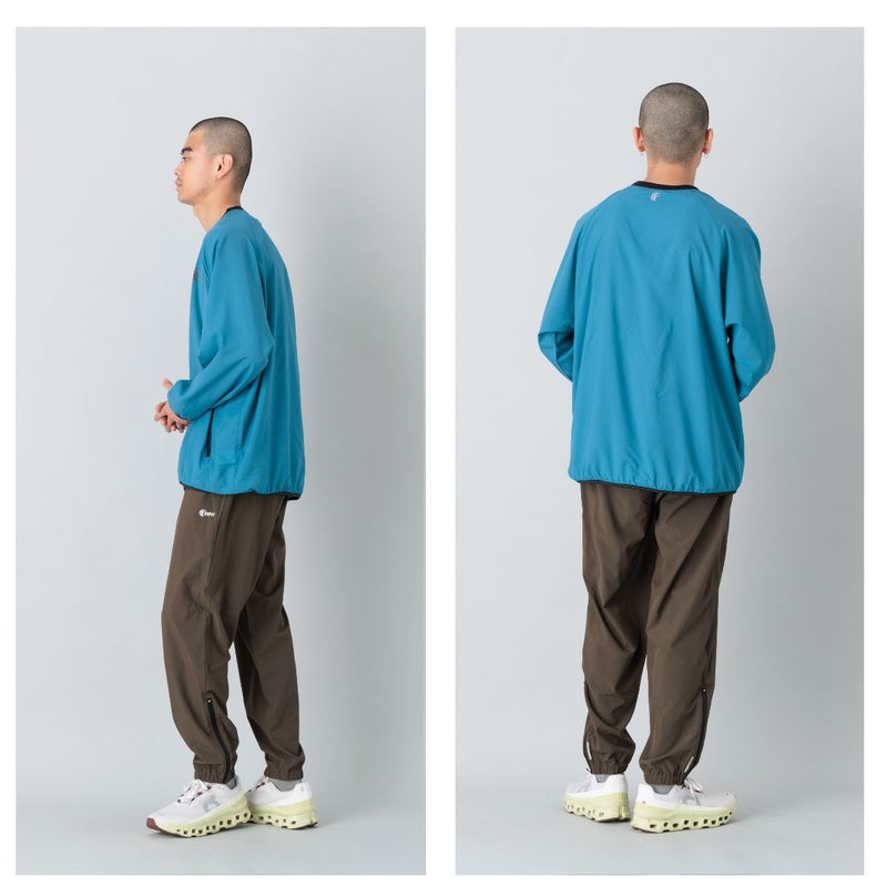 フルジップではなく、かぶり仕様にすることでよりミニマルでスポーティな印象に。ランニングやトレーニング時の体温調整はもちろん、移動時やデイリーシーンにも自然にフィットします。