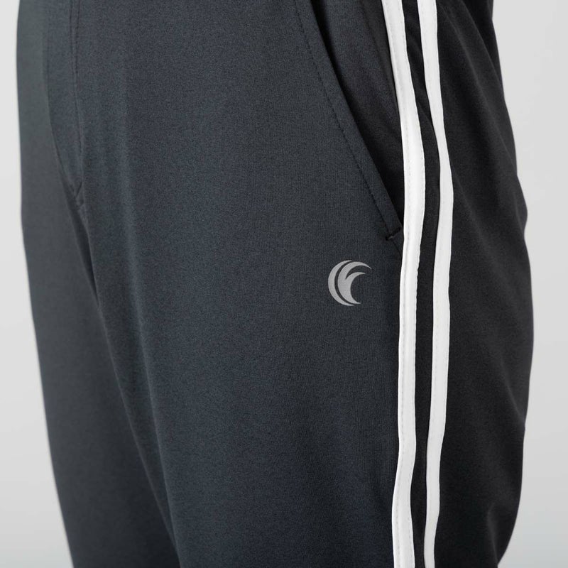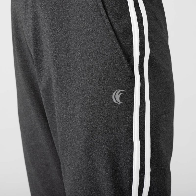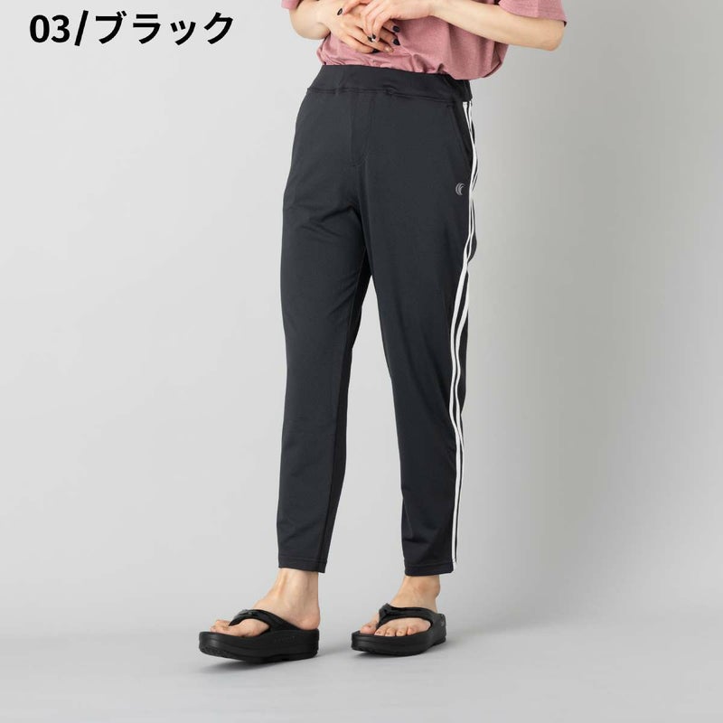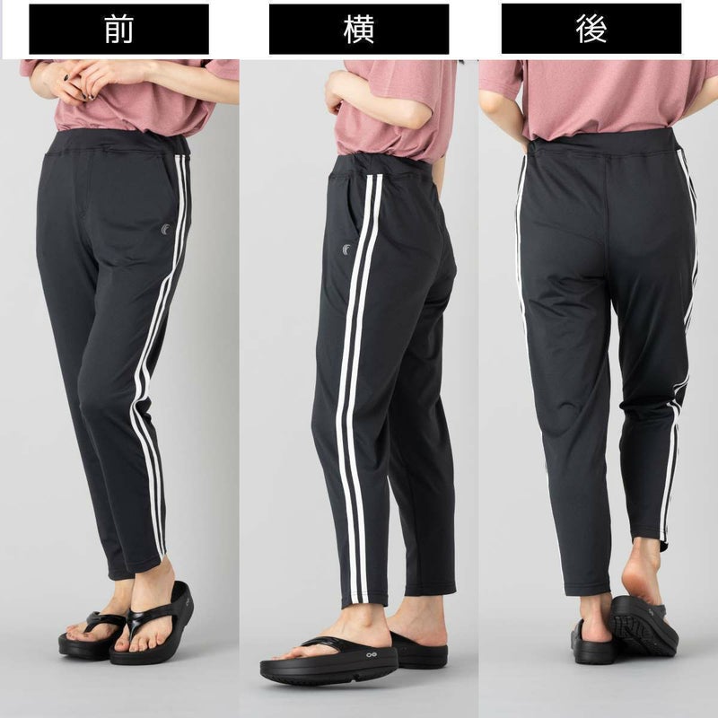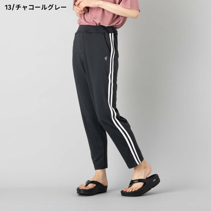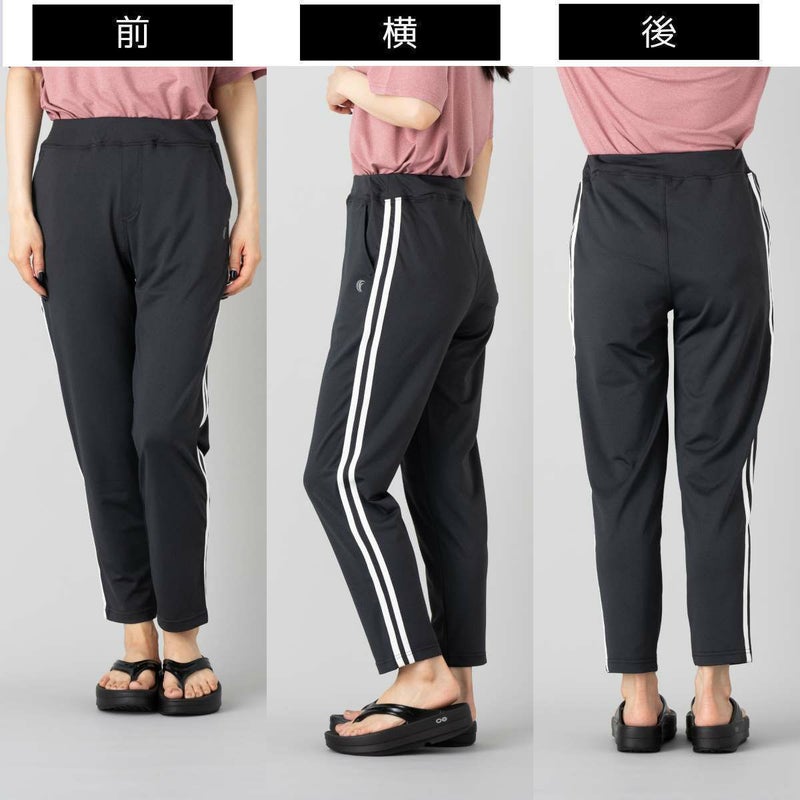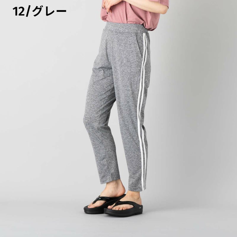 両サイドに2本のラインを配したデザインで、スポーティな印象を演出しながら、脚をすらりと長く見せてくれる視覚効果も兼ね備えたパンツ。太ももには程よいゆとりがありつつ、裾にかけて細くなるすっきりとしたシルエットで、動きやすさと美しいラインを両立しています。