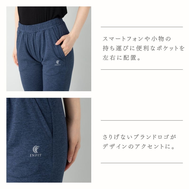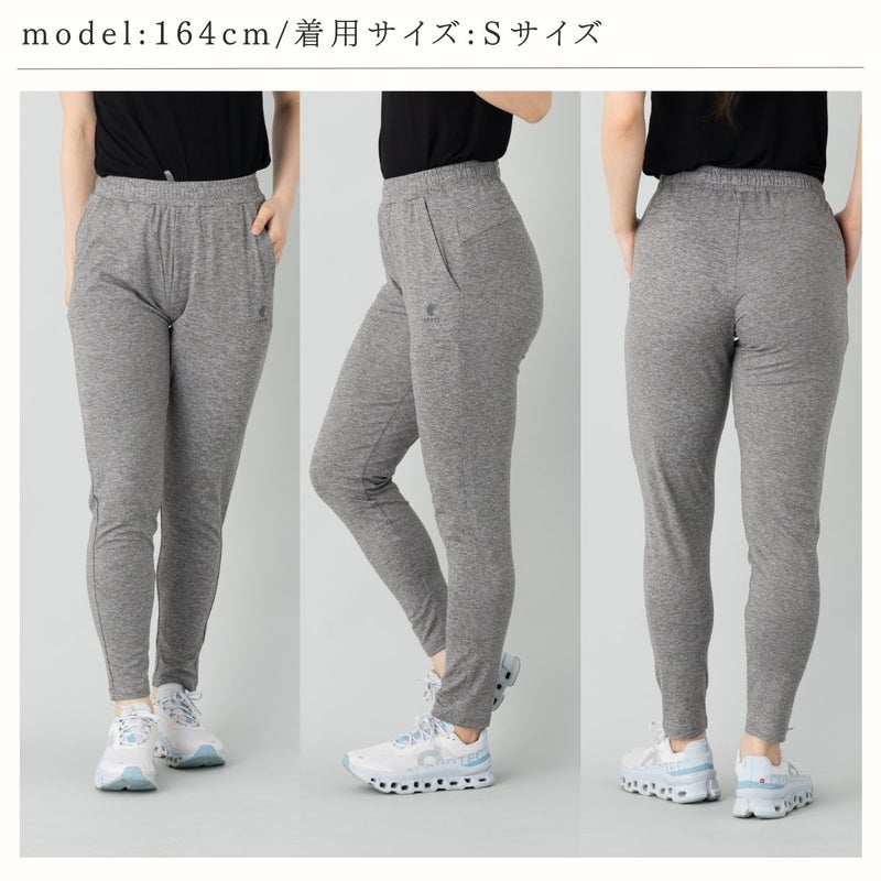 脚のラインを拾いすぎない程よいスリムシルエットは、ジムでのワークアウトはもちろん、リラックスしたいおうち時間やワンマイルウェアとしても最適。