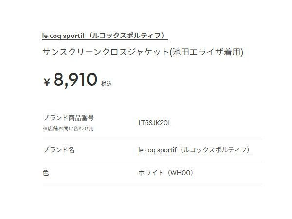 6. ルコック le coq sportif サンスクリーンクロスジャケット 池田エライザ着用 レディース 春 秋 ホワイト 白 スポーツ フィットネス パーカー ジャケット LT5SJK20L-WH00