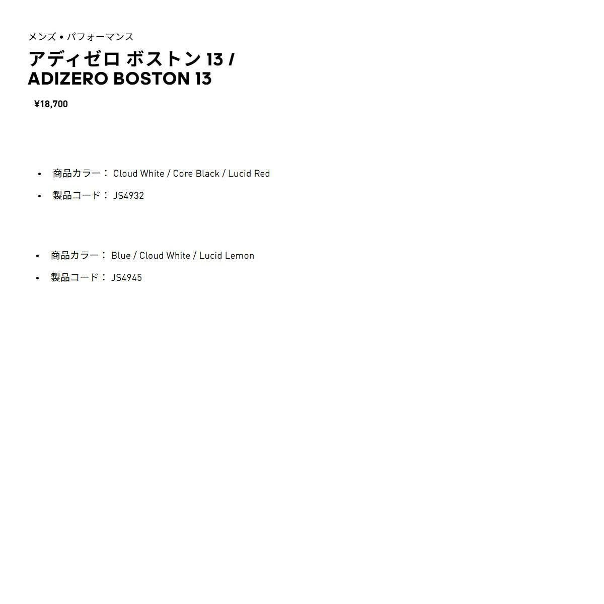 他の画像を見る 【10%OFF】スポーツ ランニングシューズ ランシュー アディダス アディゼロ ボストン 13 メンズ adidas ADIZERO BOSTON 13 メーカー希望小売価格 ¥ 18,700 販売価格 ¥ 16,830 税込 在庫切れ 在庫を見る お気に入りに登録する