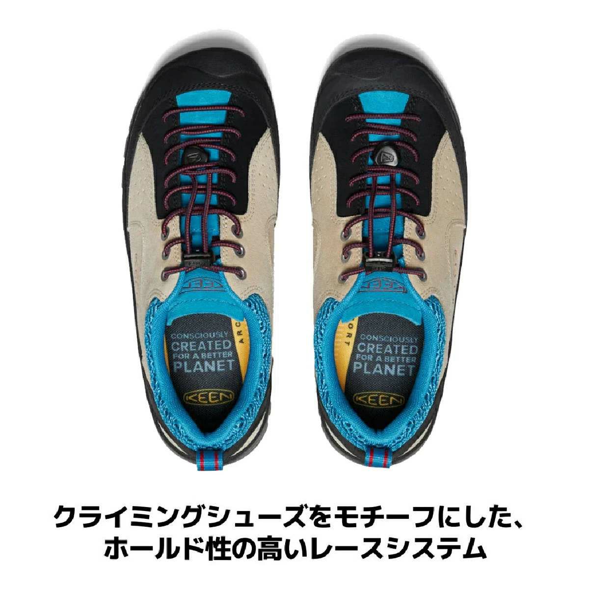 脱ぎ履きが容易なKEENならではのバンジーレースバージョン。