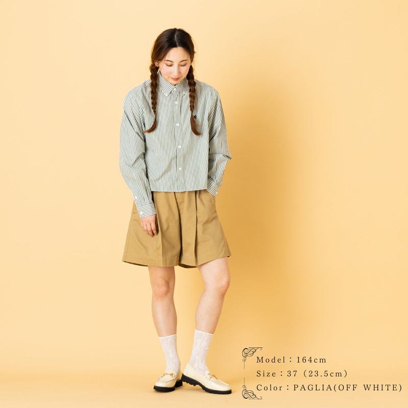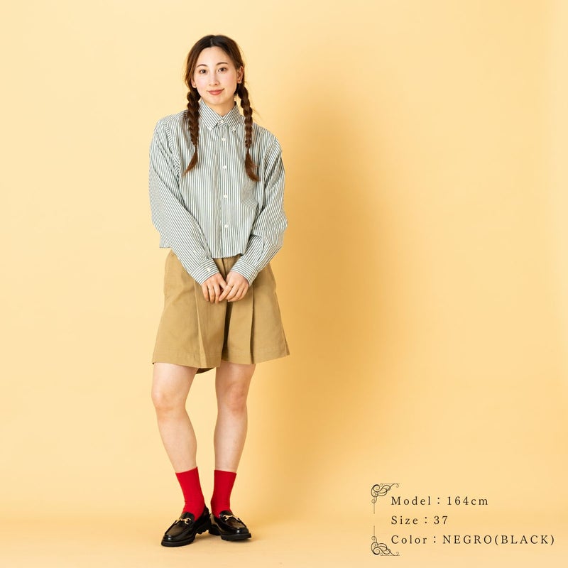 また、長すぎないソックスと合わせることで、ローファーの程よいボリュームと
