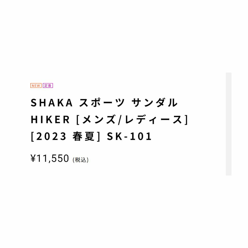 他の画像を見る 【35%OFF】 シャカ SHAKA スポーツ サンダル HIKER メンズ レディース アウトレット セール メーカー希望小売価格 ¥ 12,100 販売価格 ¥ 7,865 税込 在庫を見る お気に入りに登録する