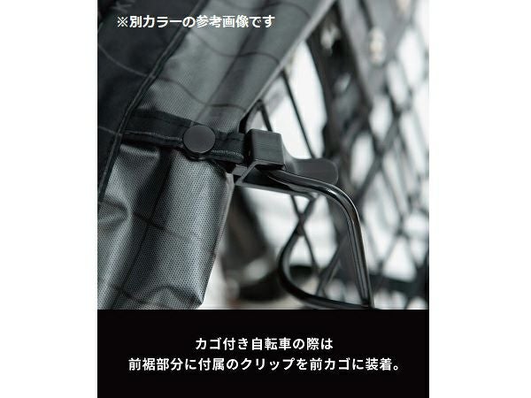 ※ カゴ付き自転車の場合は、前裾部分に付属のクリップを前カゴへ装着することでより安全に乗車いただけます。