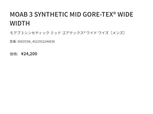 他の画像を見る メレル MERRELL 【正規取扱い販売店MOAB 3 SYNTHETIC MID GORE-TEX WIDE WIDTH モアブ 3 シンセティック ミッド ゴアテックス ワイドワイズ レディース 登山 アウトドア ハイキング キャンプ 防水 幅広 ゴアテックス シューズ スニーカー W500640W メーカー希望小売価格 ¥ 22,000 販売価格 ¥ 22,000 税込 在庫を見る お気に入りに登録する