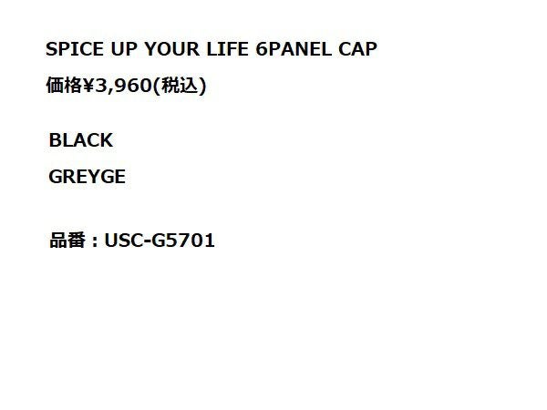 他の画像を見る 【30%OFF】 ウマミスパイスカンパニー UMAMI SPICE COMPANY SPICE UP YOUR LIFE 6PANEL CAP 帽子 キャップ カジュアル 帽子 USC-G5701 アウトレット セール メーカー希望小売価格 ¥ 3,960 販売価格 ¥ 2,772 税込 在庫切れ 在庫を見る お気に入りに登録する