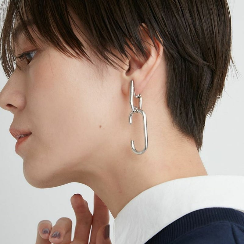 チェーンのようなモチーフのイヤリング。
