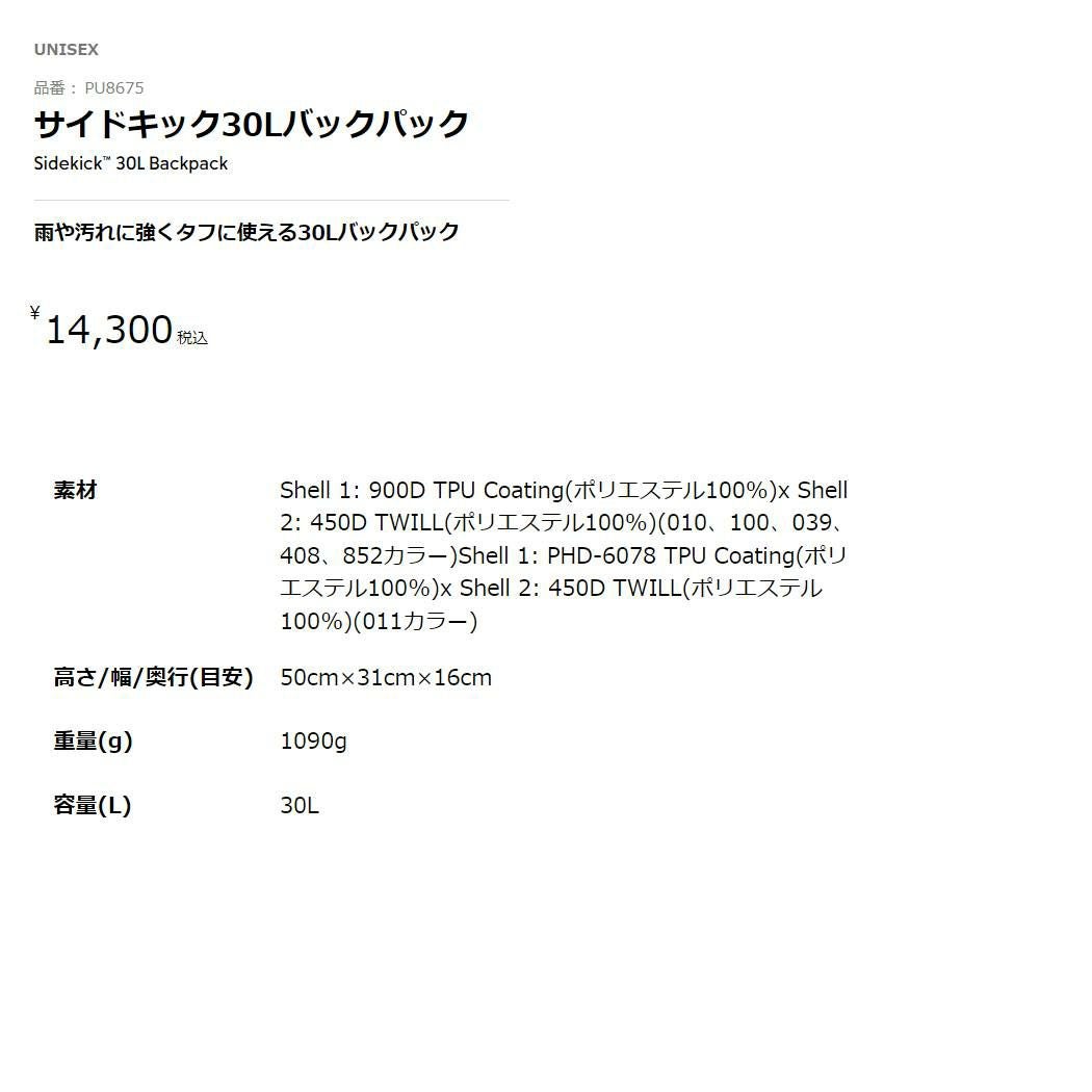 他の画像を見る 【20%OFF】カジュアル バッグ リュック コロンビア Columbia Sidekick 30L Backpack サイドキック30Lバックパック メンズ レディース ユニセックス ブラック グレー カジュアル アウトドア 通勤 通学 バッグ リュック はっ水 撥水 PFASフリー PU8675 メーカー希望小売価格 ¥ 14,300 販売価格 ¥ 11,440 税込 在庫切れ 在庫を見る お気に入りに登録する