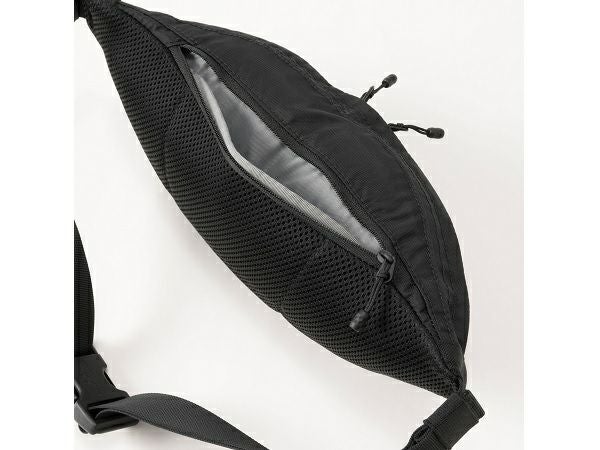 財布や携帯電話など、日常の身の回りの小物の収納に便利な1リッター容量のスリムなウエストバッグです。