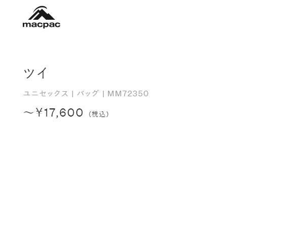 他の画像を見る 【30%OFF】 マックパック ツイ メンズ レディース ユニセックス macpac Tsui アウトレット セール メーカー希望小売価格 ¥ 17,600 販売価格 ¥ 12,320 税込 在庫切れ 在庫を見る お気に入りに登録する