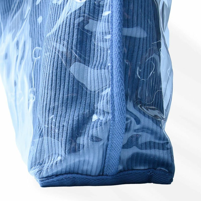 柔らかいブルーのコーデュロイにロゴを刺繍したトート。