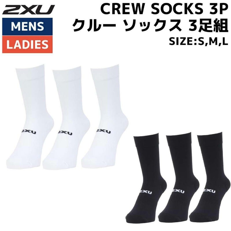 スポーツ 靴下 ソックス 2XU ツータイムズユー CREW SOCKS 3P クルー ソックス 3足組 メンズ レディース ユニセックス ブラック 黒 ホワイト 白 スポーツ 靴下 ソックス UQ7238E