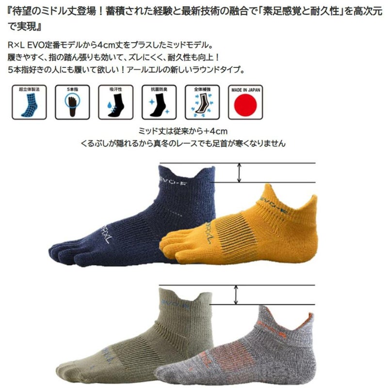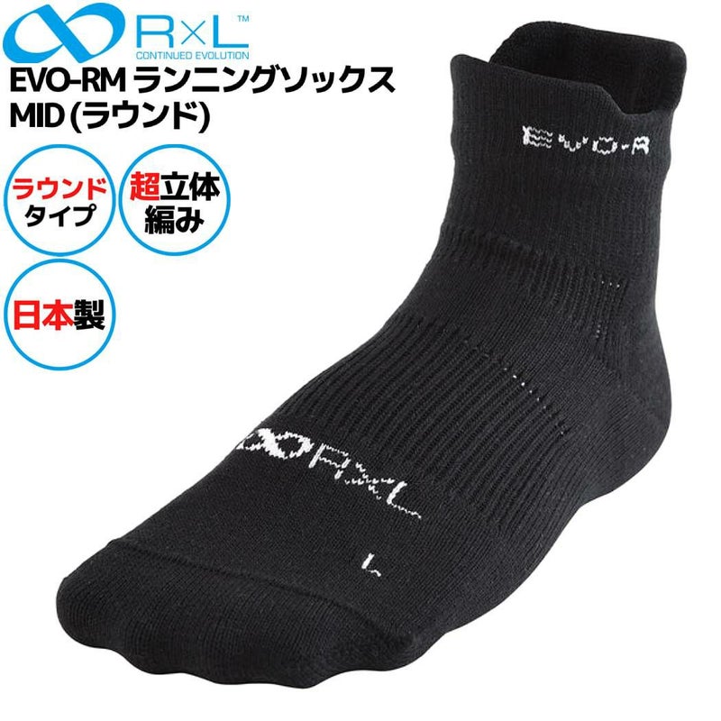 5. R×L アールエル EVO-RM ランニングソックス MID (ラウンド) メンズ レディース ユニセックス ブラック スポーツ 靴下 ソックス マラソン RNS1003 10