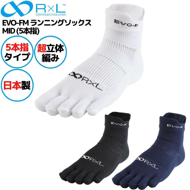 5. R×L アールエル EVO-FM ランニングソックス MID (5本指) メンズ レディース ユニセックス ホワイト ブラック ネイビー スポーツ 靴下 ソックス マラソン 5本指タイプ RNS5004 01 10 25