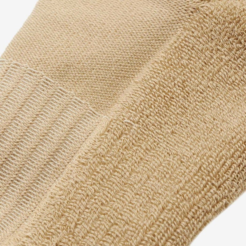 シューズとの干渉が気になるつま先とかかと部には補強糸で強度を向上。足底をパイル編みで仕上げることで、足当たりが良く快適な履き心地を実感できます。