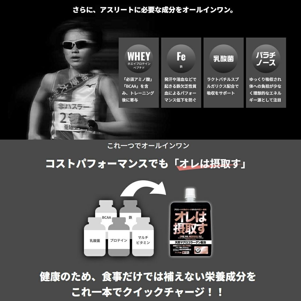 他の画像を見る オレは摂取す OREHASESSHUSU オレは摂取す ジェル リカバリー ゆず味 アミノ酸 スポーツ トレーニング 栄養補給 ゼリー飲料 補給ジェル マラソン トレラン トライアスロン 401200 プロテイン・サプリ2点以上まとめ買い割引対象商品 メーカー希望小売価格 ¥ 432 販売価格 ¥ 432 税込 在庫を見る お気に入りに登録する