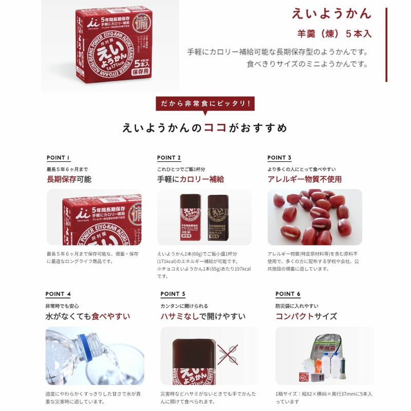 長年にわたり培ってきた羊羹の製造技術を生かして5年6か月の長期保存を実現しました。