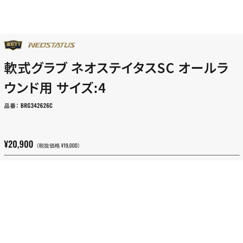5. ゼット ZETT NEOSTATUS SC ネオステイタスSC 軟式用グラブ オールラウンド用 吉川モデル サイズ4 一般 ベースボールマリオ 野球 軟式 グローブ BRG342626C