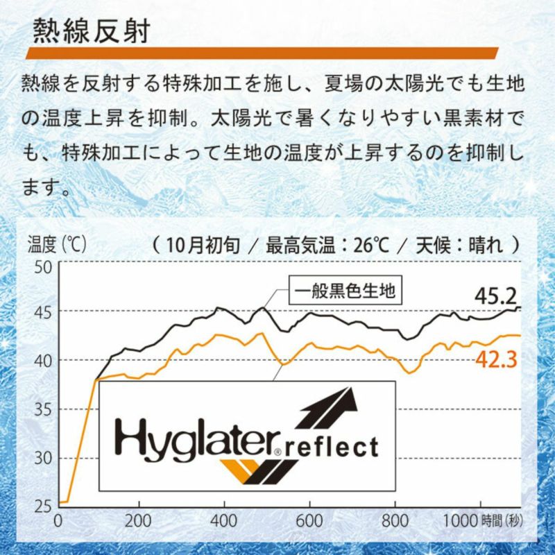 遮熱効果のある素材を使用することで生地温度の上昇を抑制します。