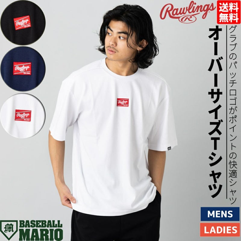 野球 トレーニング シャツ ローリングス Rawlings パッチロゴ オーバーサイズTシャツ 半袖 メンズ レディース ユニセックス Tシャツ ワンポイント 野球 タウンユース ビッグサイズ オーバーサイズ おしゃれ 可愛い AST13S09