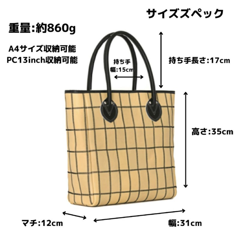 外形サイズ:幅/31cm×高さ/35cm×マチ/12cm