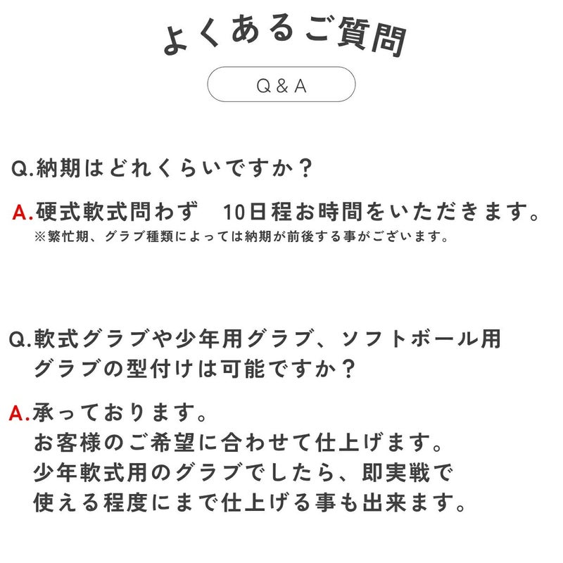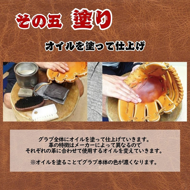 ・グラブの柔らかさの感じ方には個人差があります。当店基準の柔らかさに仕上げます。