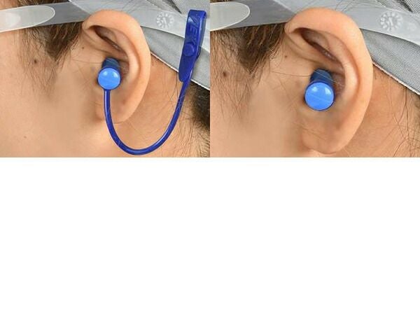 2通りの付け方が可能なシリコーン製コード付き耳栓。