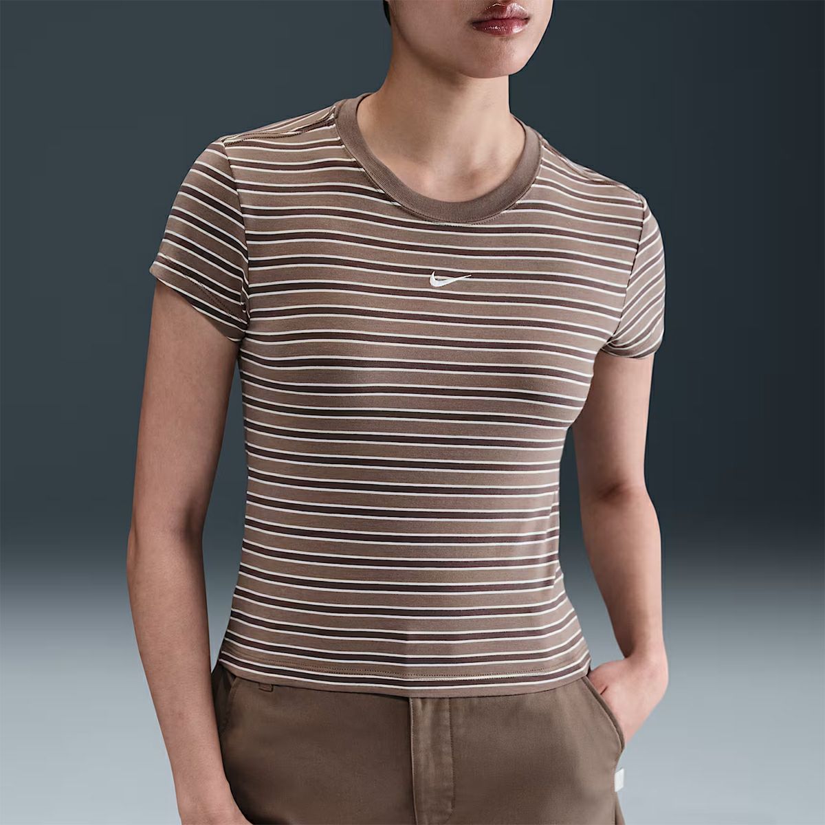 【24%OFF】スポーツ フィットネス ウェア ナイキ NIKE スポーツウェア チル ニット スリム ストライプド Tシャツ レディース 春 夏 ブラウン 茶色 スポーツ フィットネス 半袖 Tシャツ HF9525-233