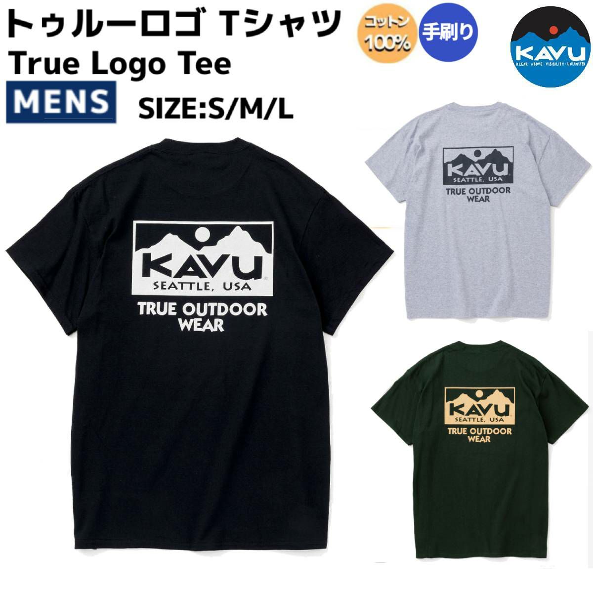 【30%OFF】 カブー KAVU True Logo Tee トゥルーロゴ Tシャツ メンズ ブラック グレー グリーン カジュアル 半袖 シャツ 手刷り ハンドプリント 19822238 アウトレット セール