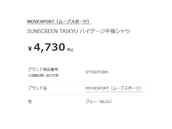 【10%OFF】スポーツ トレーニング 半袖 Tシャツ ムーブスポーツ MOVESPORT SUNSCREEN TAIKYU サンスクリーン タイキュウ ハイゲージ半袖シャツ メンズ 春 夏 ブルー 青 スポーツ トレーニング 半袖 Tシャツ ST5SHT08M-BL01