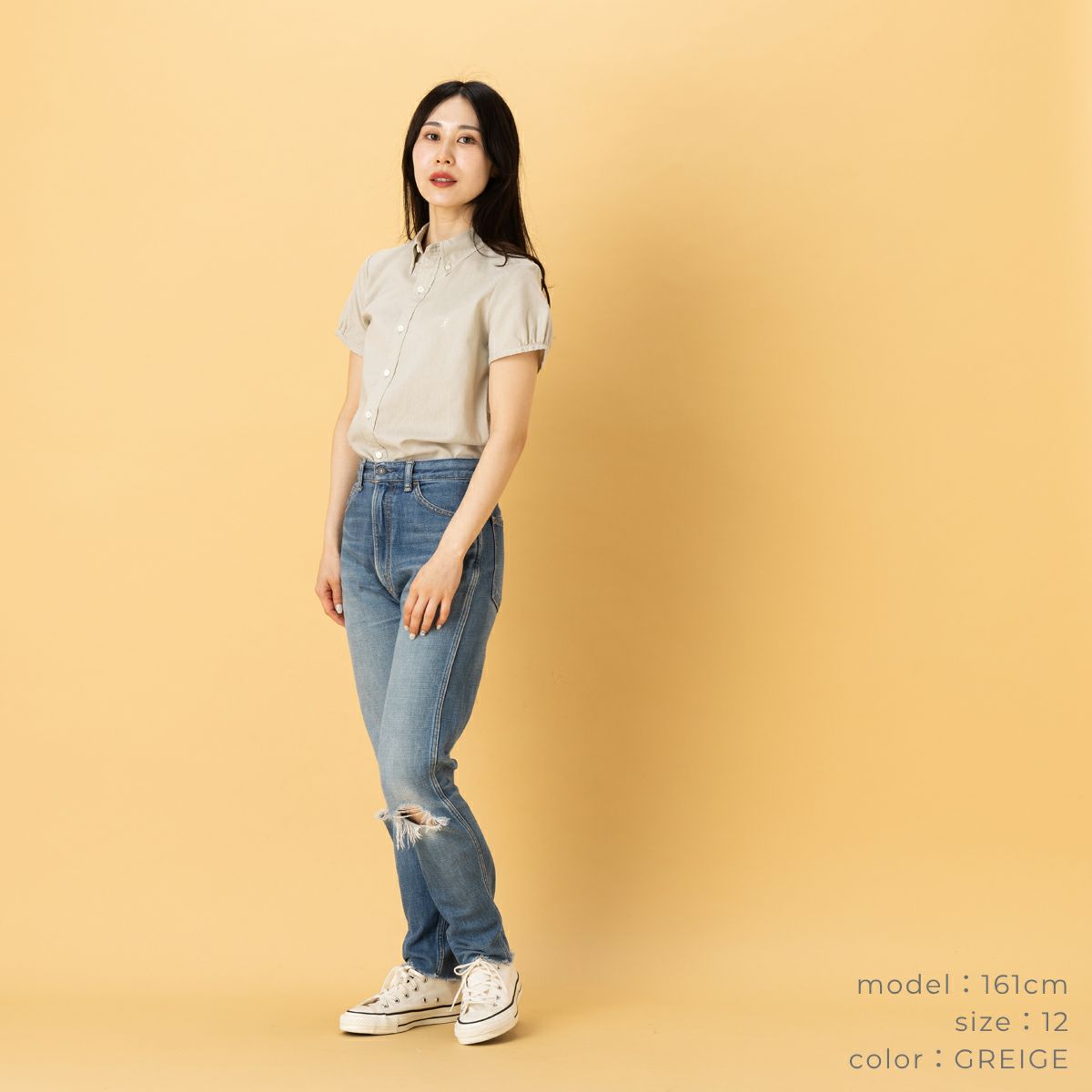 カジュアル 半袖 シャツ ジムフレックス フレンチスリーブシャツ ボタンダウン半袖リネンシャツ レディース GYMPHLEX