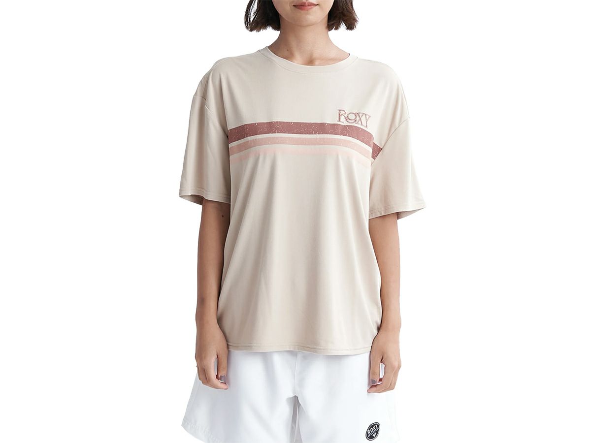 【21%OFF】スポーツ フィットネス ウェア ロキシー ROXY RETRO 90'S RASH レトロ 90年代 ラッシュガード レディース 春 夏 ベージュ スポーツ フィットネス 半袖 Tシャツ RLY241037-BGE