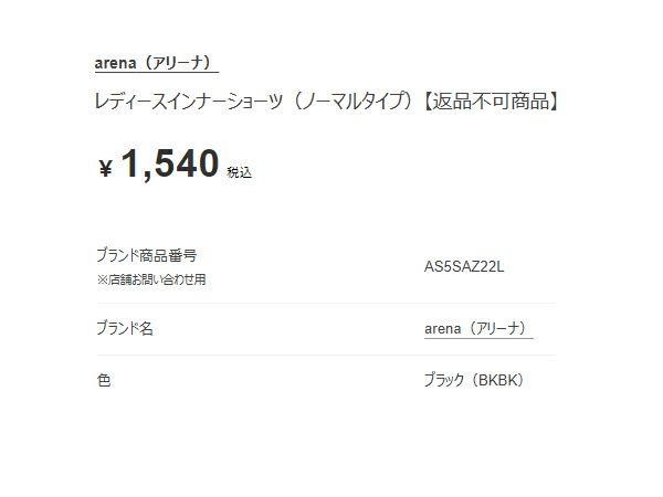 【10%OFF】 アリーナ インナーショーツ(ノーマルタイプ) レディース arena Inner Shorts (Normal Type)
