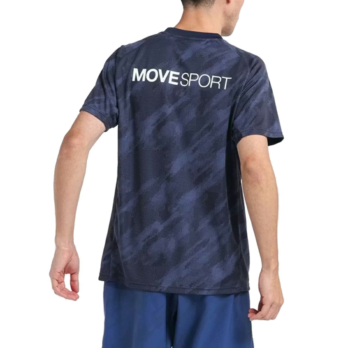 【10%OFF】 ムーブスポーツ MOVESPORT 総柄ジャガード 半袖シャツ メンズ 春 夏 ネイビー 紺 スポーツ トレーニング 半袖 Tシャツ ST5SHT03M-NV00